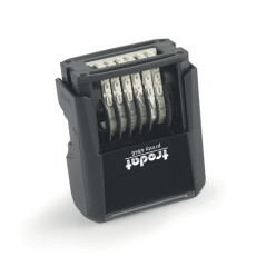 • Selbstfärber mit eingesetztem Kissen • Schrifthöhe Ziffern 4 mm • 6 Ziffernbänder 0 - 9 • Abdruckbreite 27 mm •